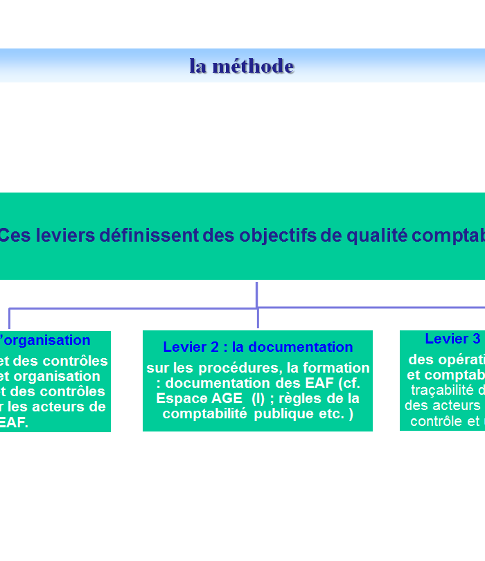 - Un axe « Leviers » qui constitue les composantes du contrôle interne