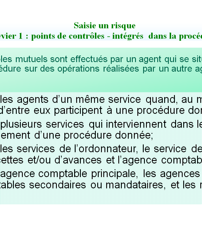 - Faible : un risque potentiel est identifié, ou son impact financier est faible.